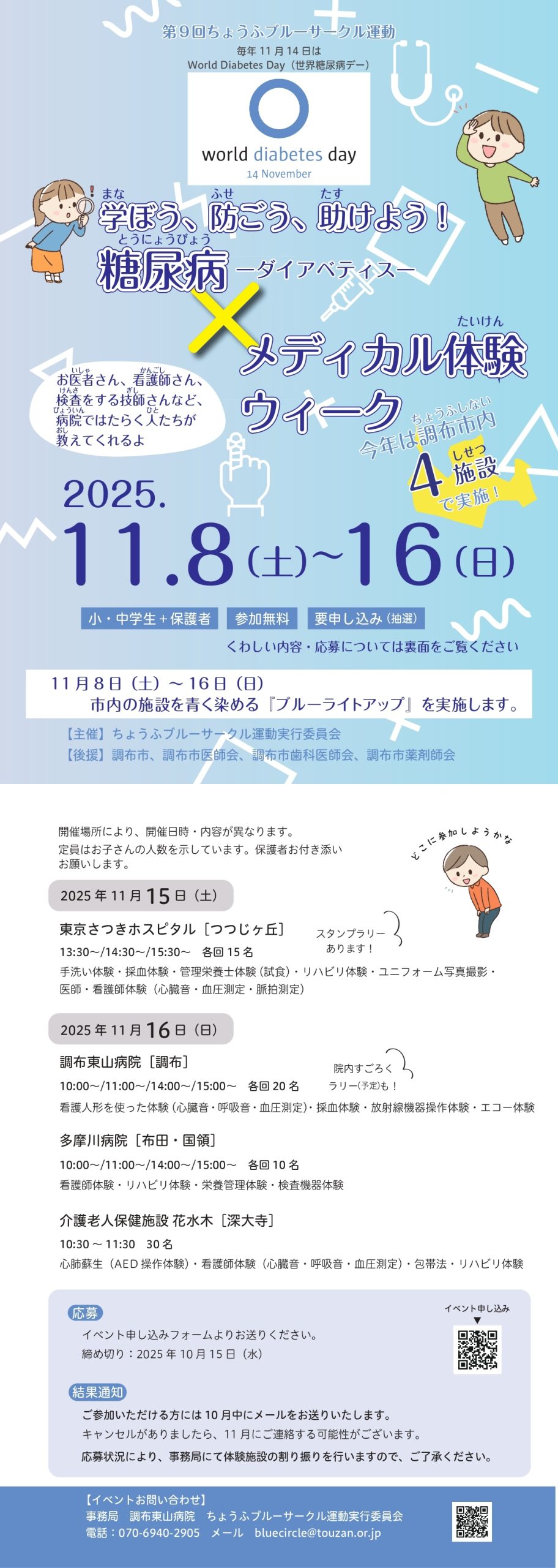 今年はその一環として、調布市内4施設が協力し、医療のお仕事を楽しく体験できる、
