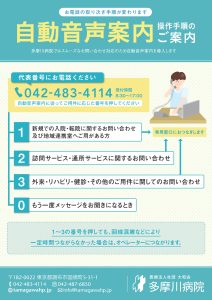 代表電話番号(042-483-4114)へご連絡いただき、下記番号をプッシュしていただくと、